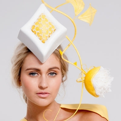 Rebecca is pleased to release her hereto exclusive Diamond Pillbox & Ring set Made for Rebecca in 2013, she won second runner up at the MYER fashions on the Field - Millinery Award that year with her hat made from them Pictured at left is the original concept sketch and Model Sarah Czarnuch wearing Rebecca's design