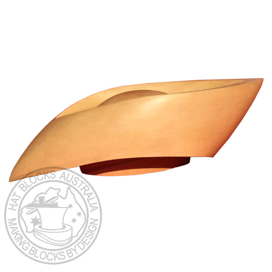 This fascinator block is similar to 'lana' but as a 'ring and centre dome'. Beautiful lines 28cm tip to tip and 11 cm wide