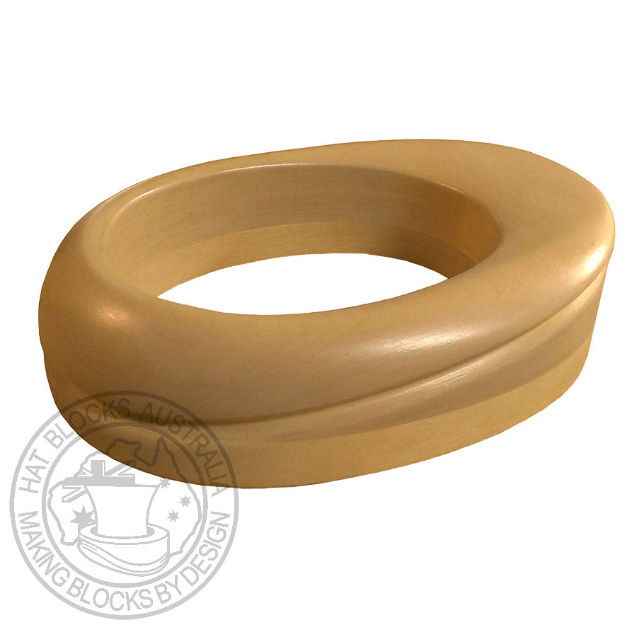 Designed to make wider brims for Trilbys and Alpine hats with the flip already in the block A leg set is available as an accessory to this brim block if you wish to block all in one. This will raise the brim to the height of your crown, please order at the same time as the brim if needed